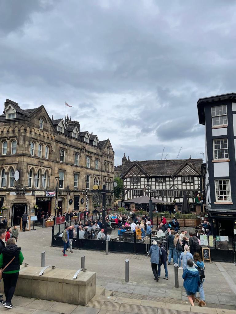Later, we grabbed a pint at The Old Wellington and Sinclair’s Oyster Bar—two of Manchester’s oldest pubs nestled side by side in a buzzing square filled with music and atmosphere. 🍺🎶