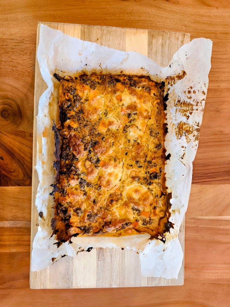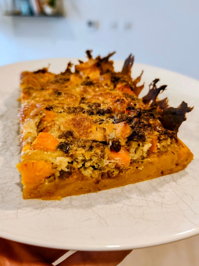 This cozy, nourishing tart combines a soft roasted butternut base with a creamy veggie mince topping, sweet roasted vegetables, and golden melted mozzarella 🧀. It’s hearty, satisfying, and perfect for a comforting lunch or dinner.